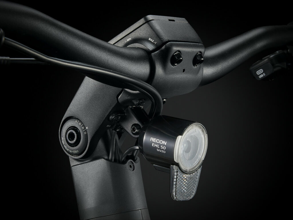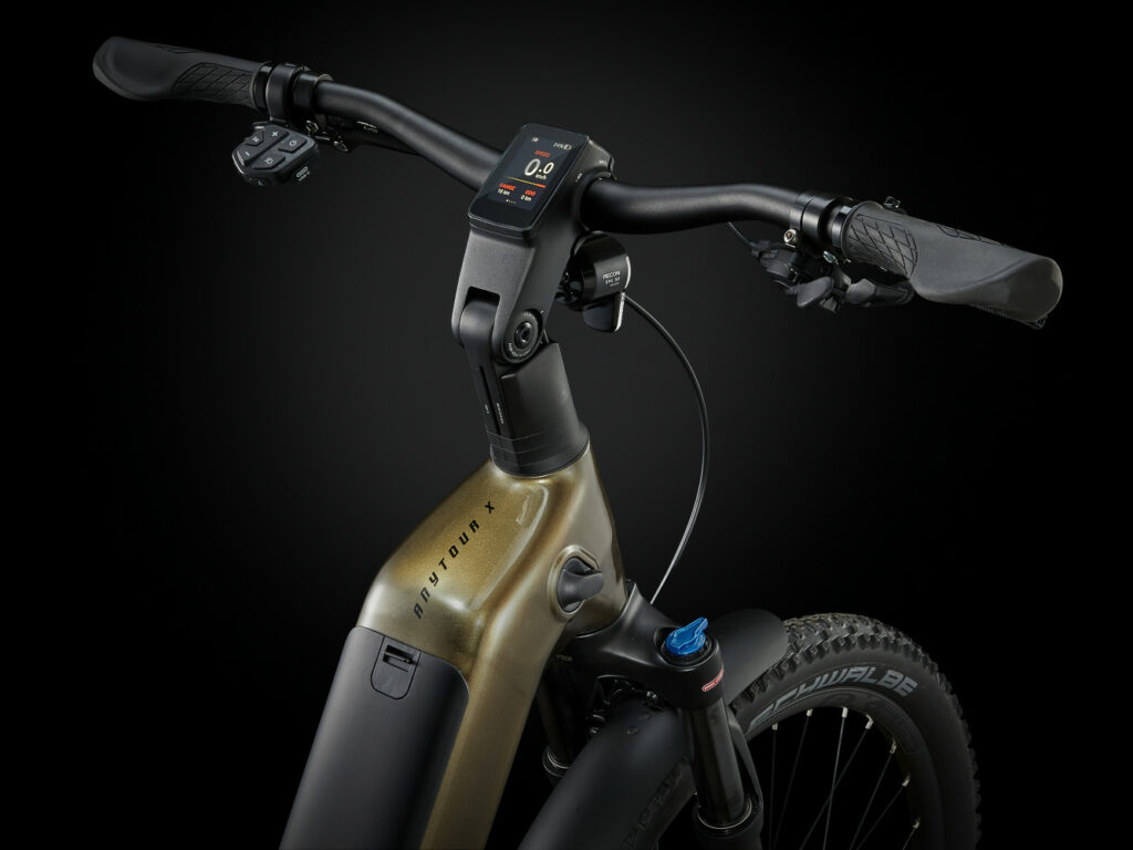 Le cadre à enjambement bas de l’Anytour X E+3 facilite les montées et descentes tout en offrant une position de conduite confortable. Le porte-bagage MIK HD permet de transporter aisément vos effets personnels ou d’installer un siège enfant compatible avec les normes ISO. Un point d’ancrage est également prévu pour l’attelage d’une remorque, renforçant la polyvalence du vélo.