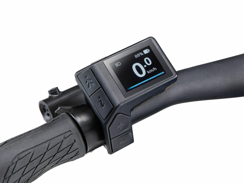 Le RideControl Evo, équipé d’un écran couleur, vous permet de suivre vos données en un clin d’œil. Connectez l’application RideControl pour recevoir vos notifications directement sur l’écran et rechargez vos appareils via le port USB. Avec son intégration soignée des câbles et ses fonctionnalités intelligentes, l’Amiti E+ ne passe pas inaperçu.