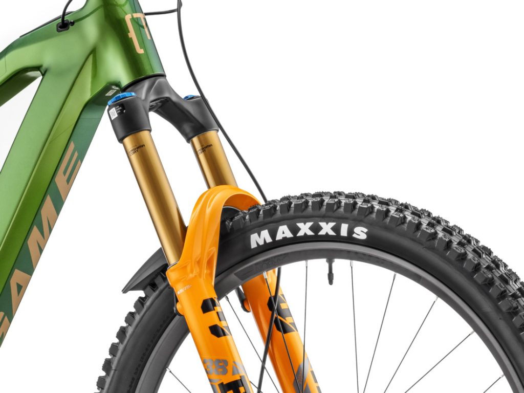 - Fourche : FOX, 38 Factory, GRIP X2 avec réglages HSC/LSC/HSR/LSR, débattement 170mm, 15x110mm Boost, offset 44mm, avec mini garde-boue