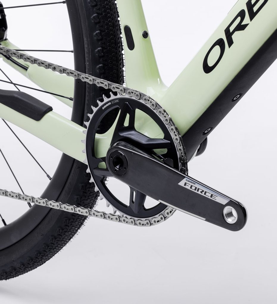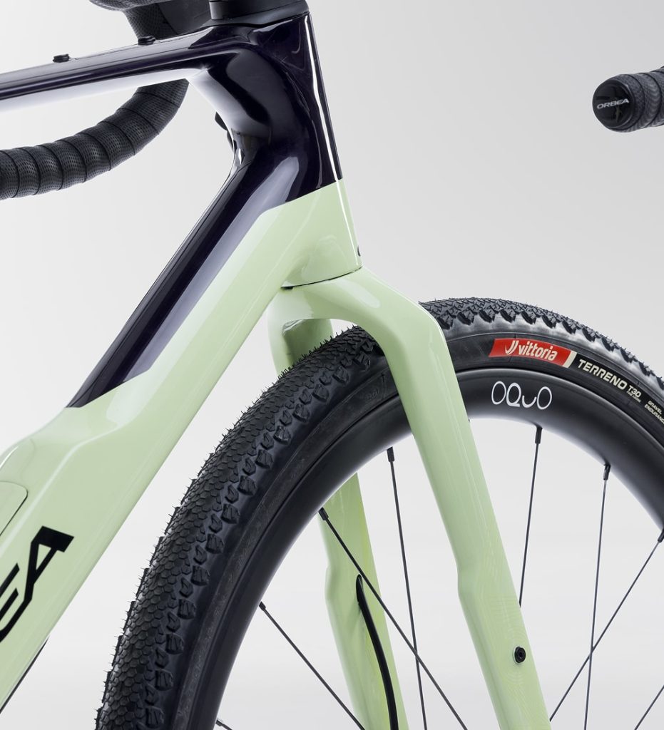- Cadre : Orbea Terra carbone OMR Disc, construction monocoque, HS 1,5", BB386EVO, compatible avec capteur de puissance, axe traversant arrière 12x142 mm, filetage M12xP1, pattes UDH, boîte de service LOCKR XXL, système de montage multiple MMS, prêt pour garde-boue.