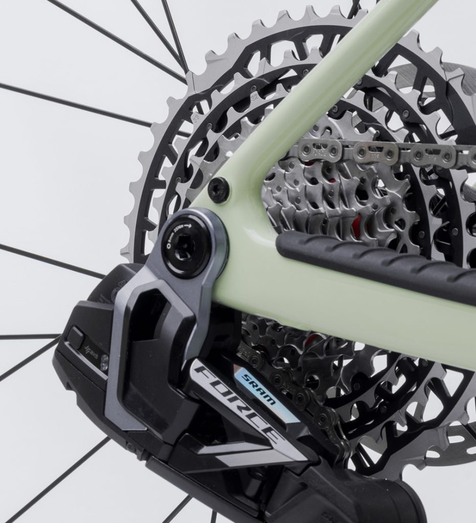 Le cadre est conçu pour accueillir l’Universal Derailleur Hanger (UDH), afin de poursuivre vos sorties même en cas d’imprévu.