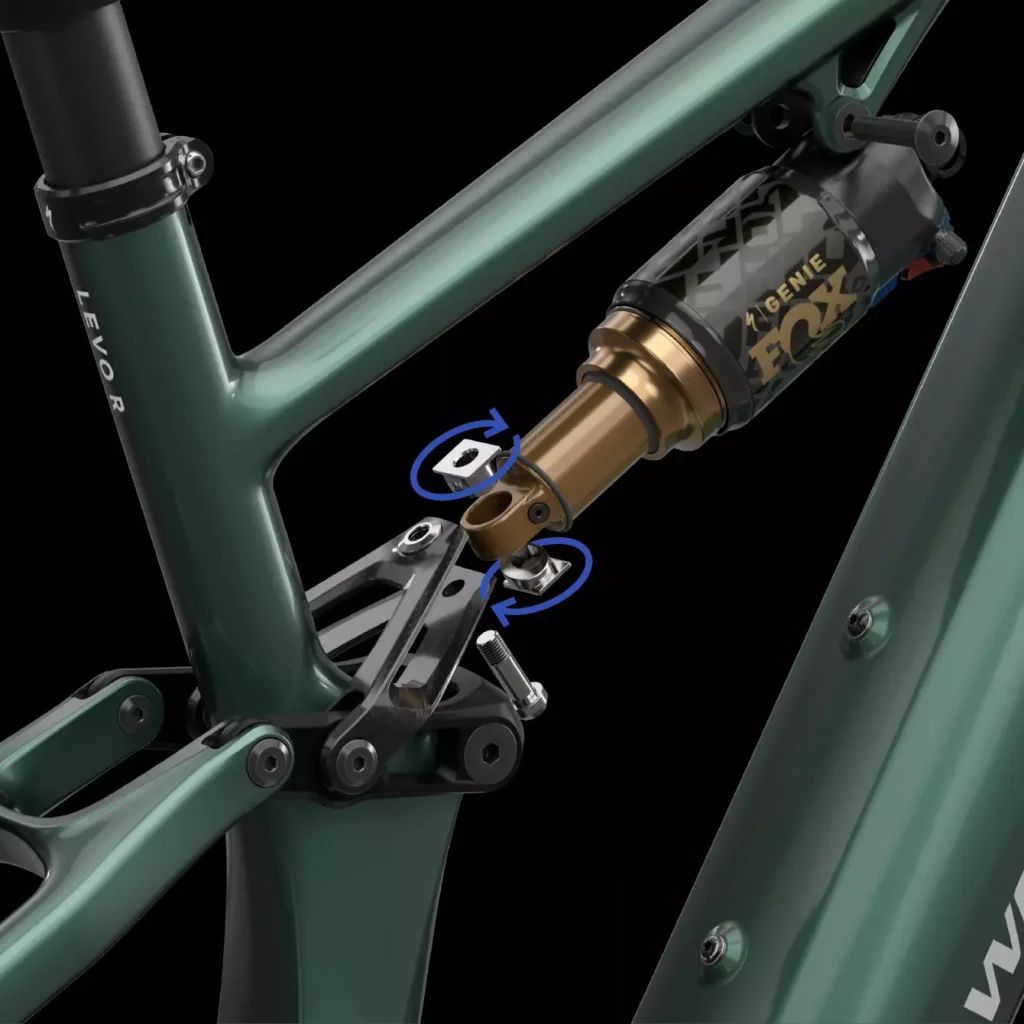 – S-Works Turbo Levo R équipé du GENIE FOX FLOAT : 95 mm de débattement.