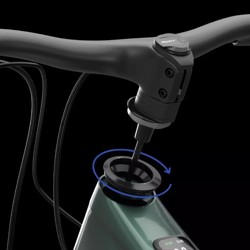 L’angle de direction est réglable sur trois positions : plus fermé pour un pilotage vif et précis, ou plus ouvert pour renforcer la stabilité à haute vitesse.